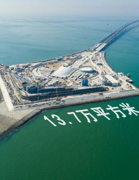 深中通道西人工島長625米,最寬處456米,島體面積13.7萬平方米,相當于19個國際標準足球場大小,是當今世界上鋼圓筒圍壁形成的最大人工島,承載著深中通道橋隧轉換的重要功能,是全線的先行工程、關鍵樞紐工程,被譽為粵港澳大灣區的“海中鯤鵬。